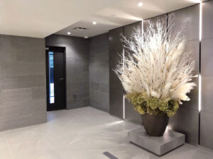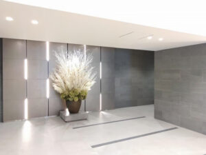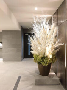 マンションのエントランスにアーティスティックな大型アレンジメントを