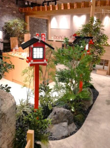 オープン後は、「和」の空間は大変評判が良く、多くのお客様が願掛けや写真撮影するなどお買い物を楽しめるスペースになっているとご依頼主様より伺いました。お客様の癒しとなる空間づくりのお手伝いができて大変嬉しい限りです。この度はご依頼いただき、誠にありがとうございました。