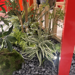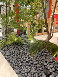 東京スカイツリーの中ということもあり、外国人観光客も多い好立地に構えられた店舗です。ご依頼主様の店舗コンセプト・イメージを大切にすると同時に、フォトスポットになるような空間を意識して「和」の植栽をコーディネートいたしました。植栽は、大きく分けて4カ所に設置しています。