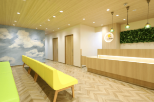 新築クリニックの受付を彩る壁面グリーン装飾事例|ナチュラル×イエローの優しい空間演出